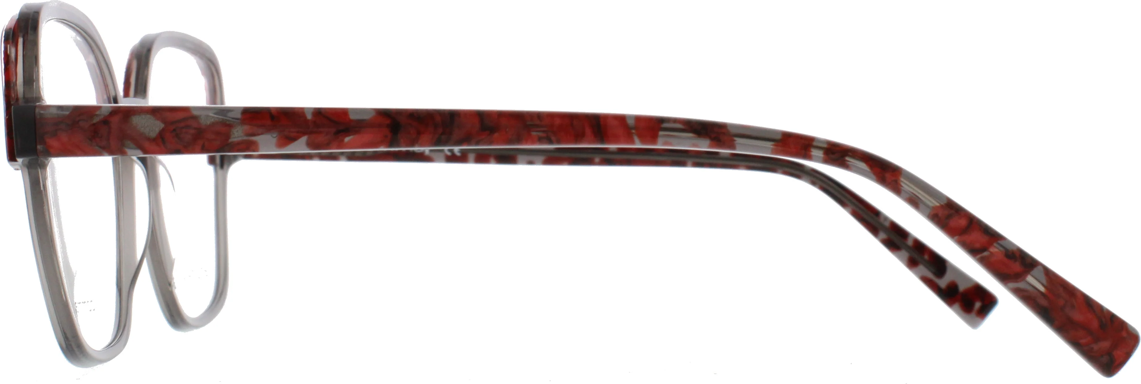 Die Comma 70182 ist eine elegante Damenbrille mit einer edlen Acetatfassung in transparenten Grau. Die Browlinie sowie die Bügeln sind blumenhaft rot verziert. Die Brille wirkt dadurch sehr Retro und ist ein echter Hingucker. Die Kunststoffbügel in Rot ergänzen das Design perfekt und bieten gleichzeitig hohen Tragekomfort. Ideal für Frauen, die eine Brille suchen, die sowohl funktional als auch modisch ist.