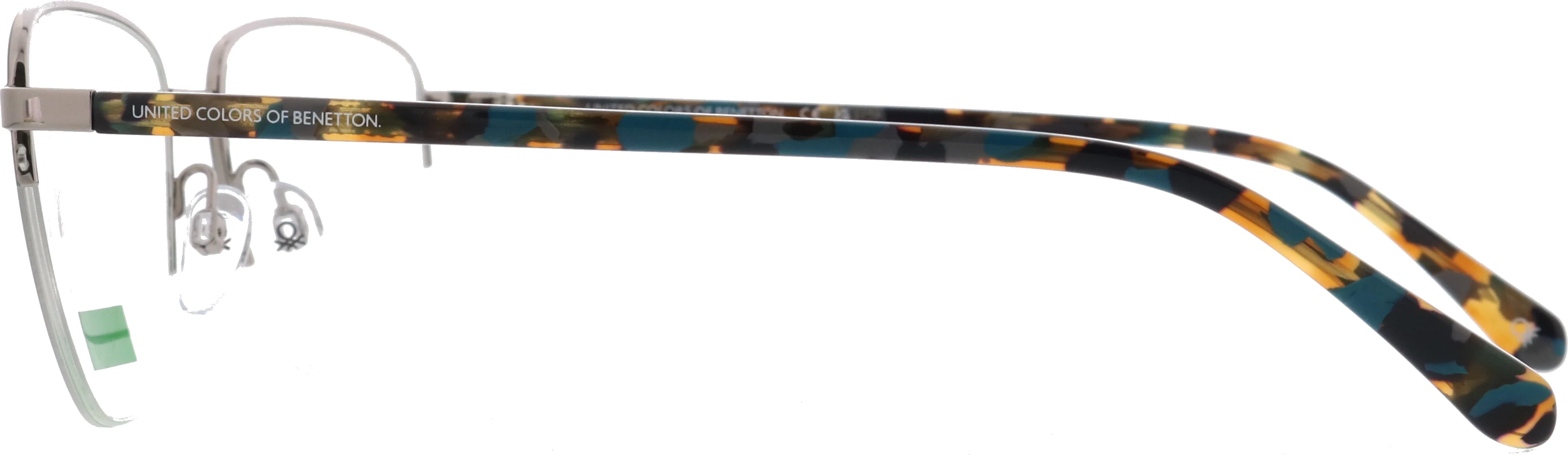 Die Benetton 3088 ist eine moderne Halbrandbrille für Herren, die durch ihr stilvolles Design und hochwertige Materialien überzeugt. Der silberne Metallrahmen mit hellgrauen Details verleiht der Brille eine elegante Leichtigkeit, während die braunen Kunststoffbügel mit dezentem Muster einen warmen, modischen Akzent setzen.